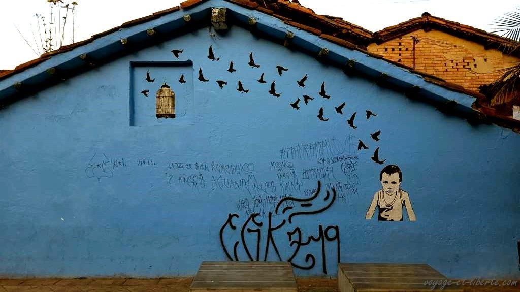 J’aime bien le street-art, mais j’aime moins le côté décati du « vrai » Bogota. Y a tellement de barbelés partout qu’on croirait presque que les allemands de l’ex RDA y ont destocké leurs rouleaux inutilisés à la chute du Mur de Berlin.