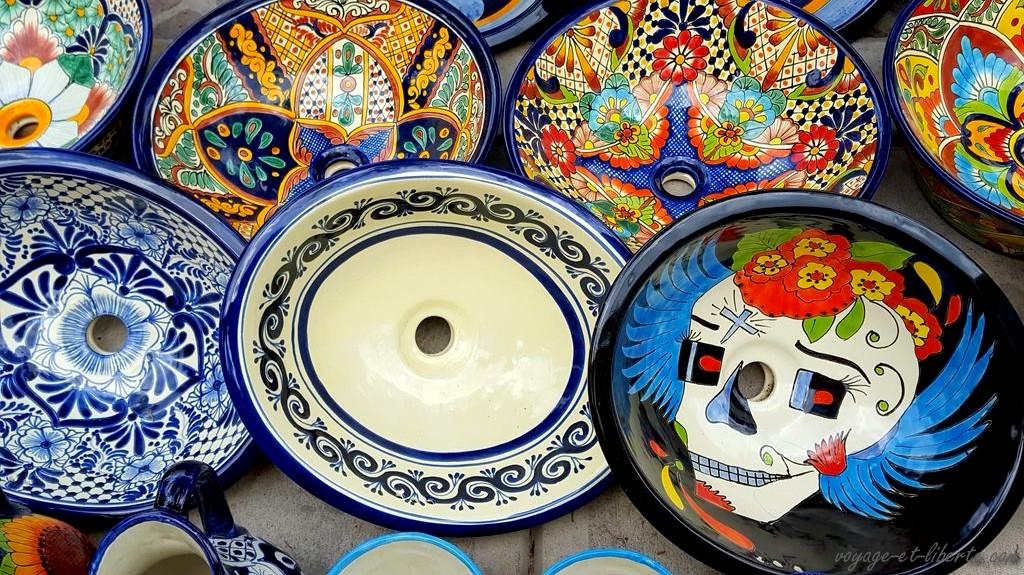 L’atmosphère de la ville est paisible et nous y passons un agréable moment avant de nous mettre en quête des artistes céramistes. Mais où peuvent-ils bien se cacher ? En réalité, nous les cherchions en centre-ville, alors qu’ils se trouvent à sa sortie. Pas de souci, avec le CC nous avons tôt fait de nous y rendre. La céramique vendue est colorée et très sympa. Flâner dans les différentes boutiques est un régal, d’autant plus que les prix pratiqués sont vraiment très doux. A choisir, il est 1000 fois préférable de l’acheter ici qu’à San Miguel de Allende où les mêmes objets sont vendus beaucoup plus chers !