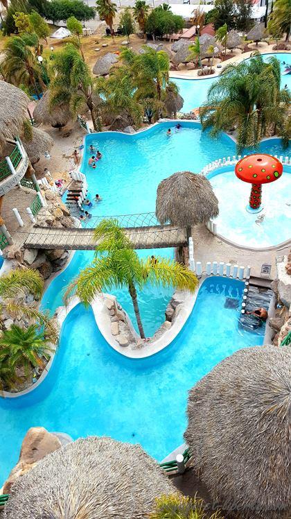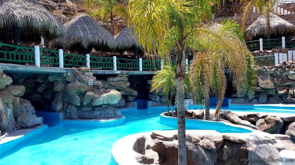 J’avoue ne pas être très « parcs aquatiques », mais là, le site immense est absolument magnifique. Comble du bonheur, nous sommes un lundi et il y a peu de monde. Gracias a Dios ! Je n’ose imaginer cet endroit un week-end, un jour férié ou pendant les vacances ! Des milliers de personnes doivent pouvoir y accéder étant donné le nombre de chambres d’hôtel disponibles, les emplacements pour planter la tente et la taille des parkings. Gloups !