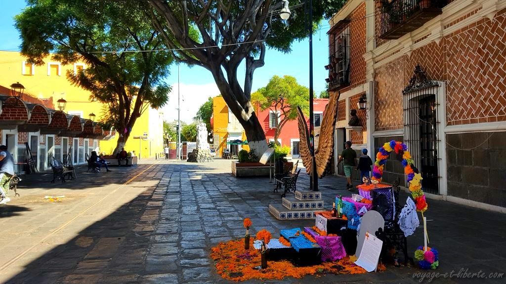 Nantis de notre super expérience à San Miguel Allende où nous étions presque restés coincer dans les rues étroites de la ville, nous préférons garder nos distances quant à la grande ville que nous ne connaissons pas et filons à Cholula pour y passer la nuit et y garer le CC le temps de notre séjour dans la région.