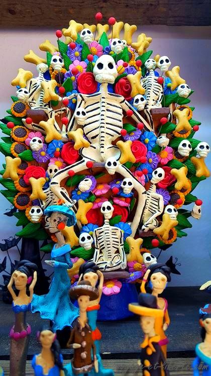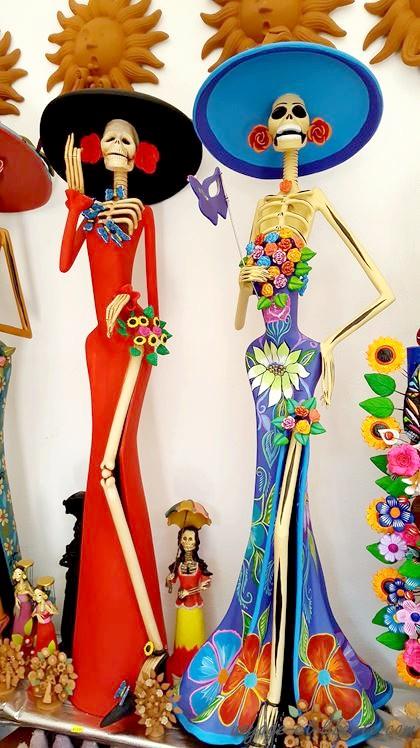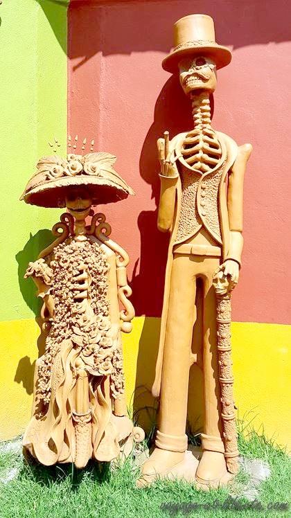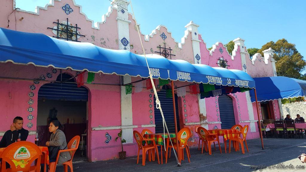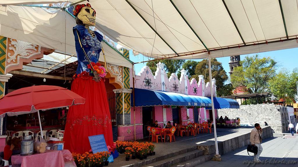 Un peu plus haut, nous faisons une halte vers un petit mercado rosado, devant lequel trône une superbe « Catrina Frida Khalo ».