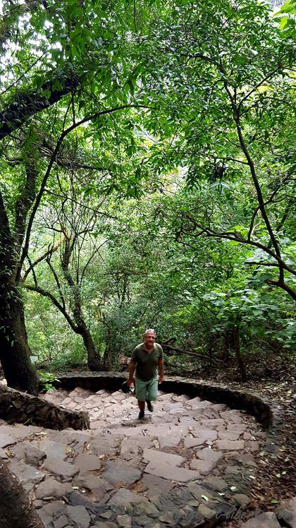 Mardi matin, nous parcourons le joli petit sentier qui mène au site de Malinalco. Sa particularité est d’avoir été, en partie, creusé à même le roc. Il était consacré à la guerre et aux valeureux guerriers.