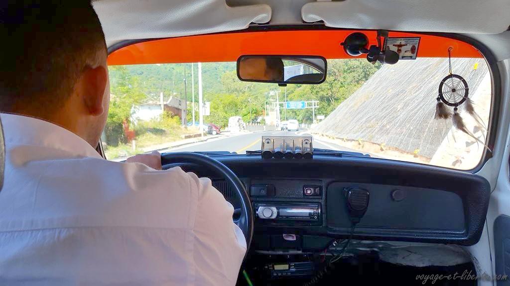Curieusement, ici, les taxis ne sont que de vieilles Coccinelles n’ayant plus de siège avant passager. On se tasse comme on peut à 3 sur la banquette arrière, mais il ne faudrait pas être plus gros. Le chauffeur nous explique que seules ces dernières, avec leur moteur dans le coffre, ne patinent pas dans les rues très très pentues et glissantes de la ville. On le croit sur parole.