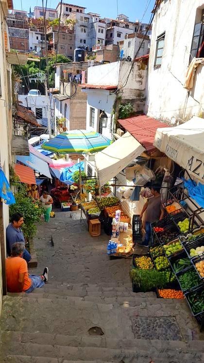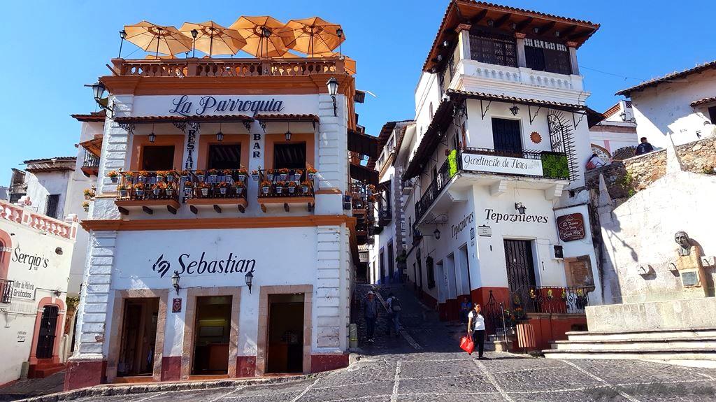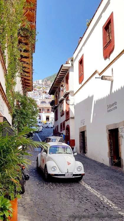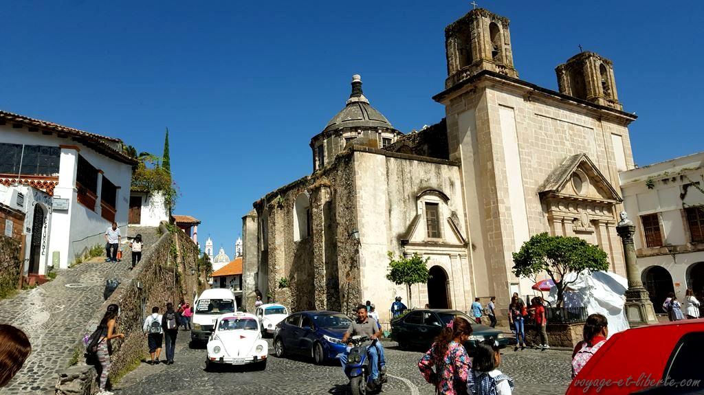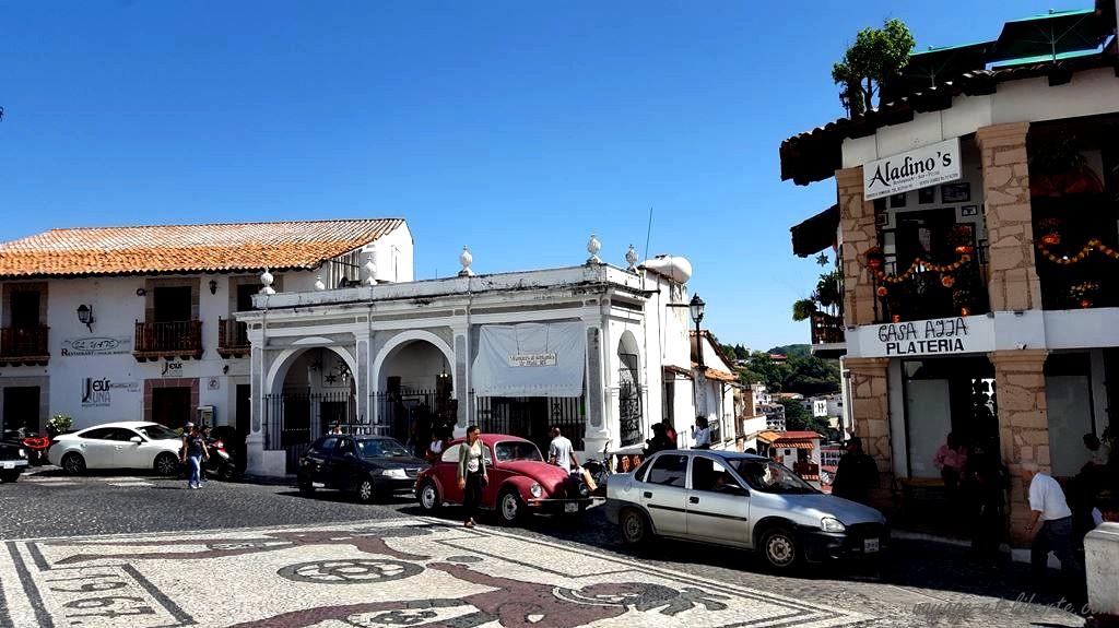 Petit problème : les rues étroites ne possèdent pas de trottoirs et la circulation y est vraiment dense et anarchique. Ici, le vrai danger, c’est clairement pas les narcos, mais les voitures qui te frôlent à chaque instant ! Mairie de Taxco, si par hasard tu me lis, j’ai une suggestion pour toi : débarrasse tes flics de leurs armes lourdes et dote-les de sifflets pour qu’ils fassent la circulation, ils seront beaucoup plus utiles ainsi ! Mieux ! Aménage une grande zone piétonne, Dieu te le rendra !