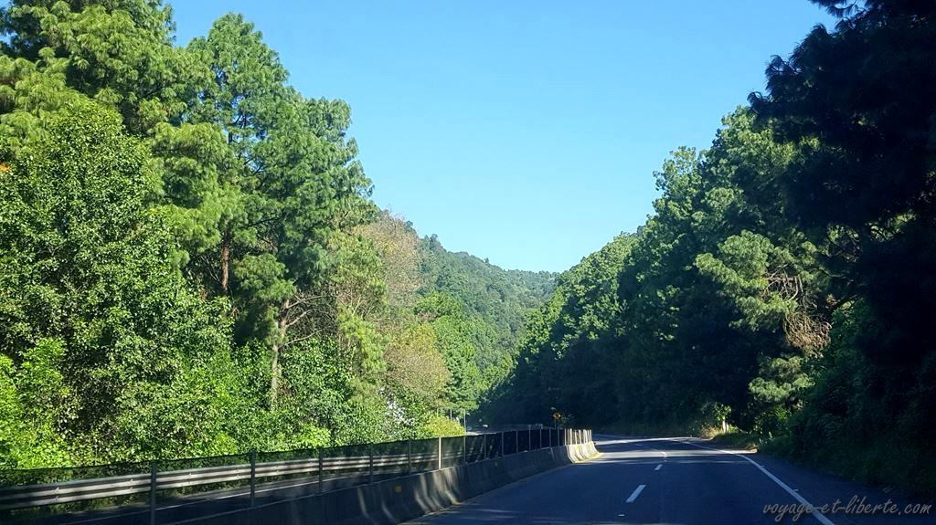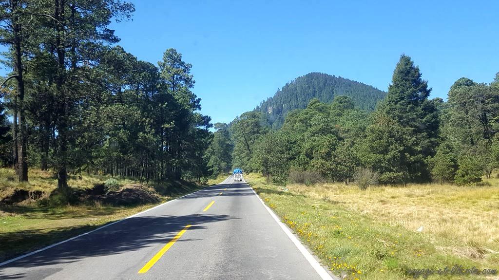 Les paysages changent radicalement. Nous contournons le volcan Popocatépetl et parcourons des routes de montagnes sinueuses et très belles. Surprise : il y a beaucoup moins d’ordures jetées sur leurs abords. Tout semble plus propre, plus sauvage. Le Mexique profond à deux pas de la capitale.