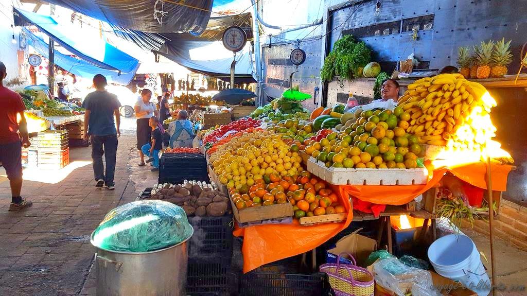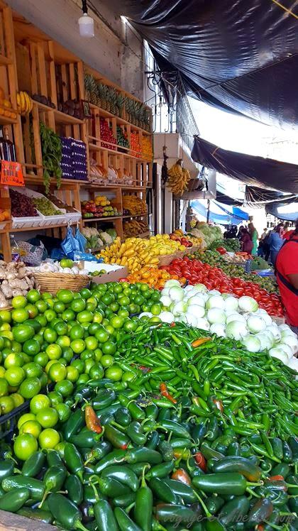 Le marché où l’on vend une multitude de fruits et légumes, regorge entre autres de champignons, de nèfles et de raisins. On pourrait presque se croire en Savoie à l’automne si les gens ne parlaient pas en espagnol.