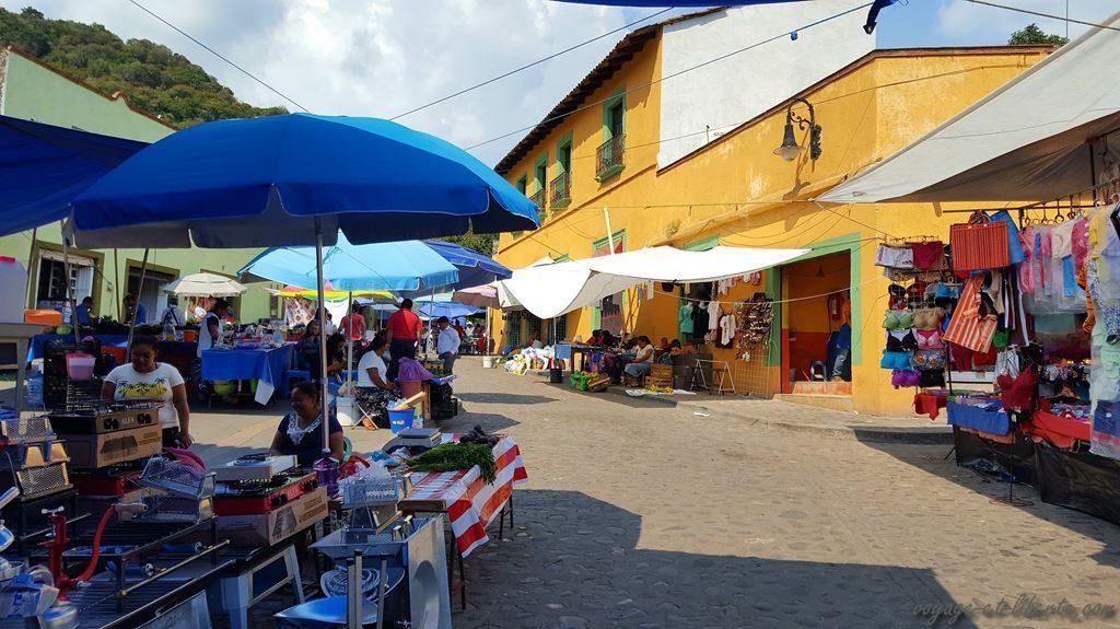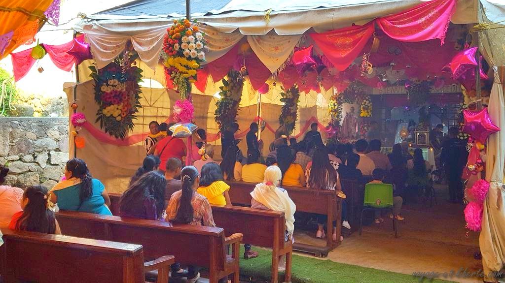 En ce dimanche après-midi, la petite cité est particulièrement animée, en dépit de l’orage qui menace. Les gens se pressent dans les rues, sur les places, des concerts ont lieu, des « natifs » organisent des limpias. Partout on mange et on boit.