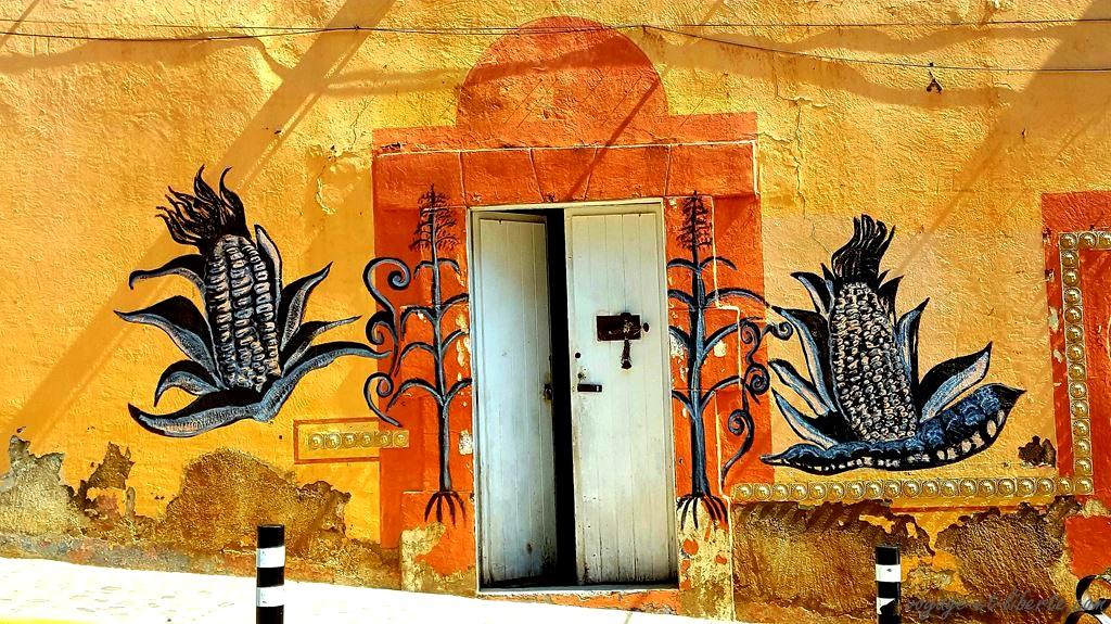 Retour dans le village reconverti en temple du New-Age. Charmant, au demeurant. Le portail de l’église, dont les fresques sont réalisées en graines, vaut à lui seul le détour !