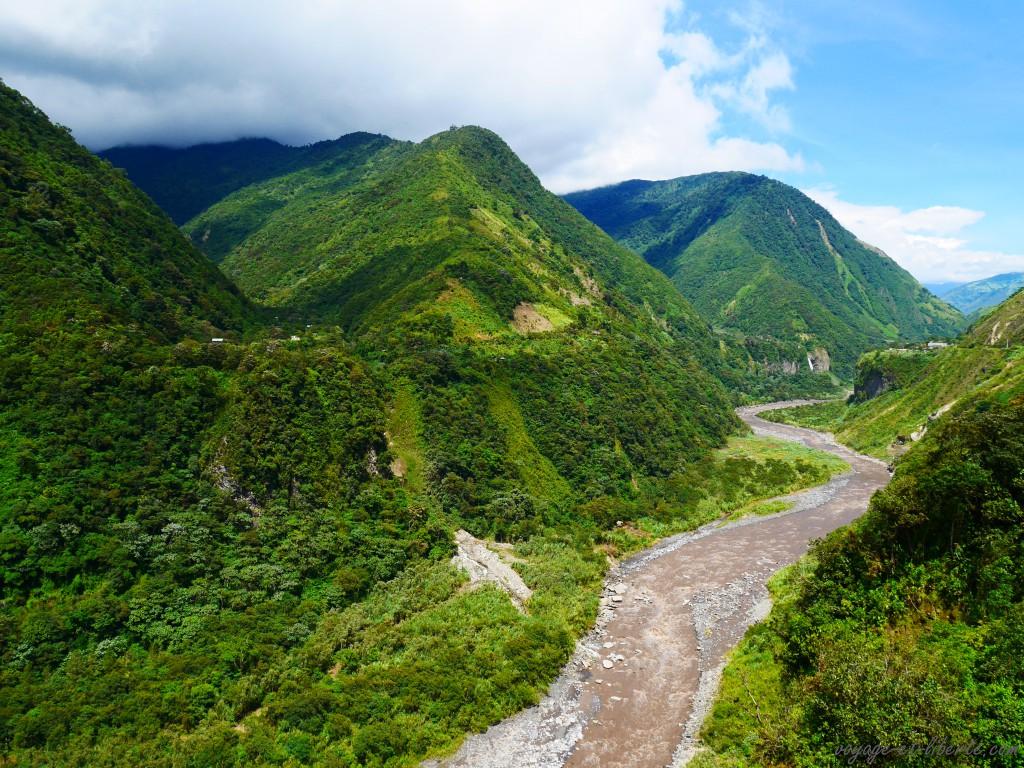 Après notre expérience ferroviaire, 3 possibilités s’offraient à nous : partir vers le Pacifique, remonter « l’avenue des volcans » jusqu’à Quito ou obliquer en direction de l’Amazonie. Nous avons choisi la 3ème. Direction Banos de Aguas Santas, porte d’entrée de la dite région.