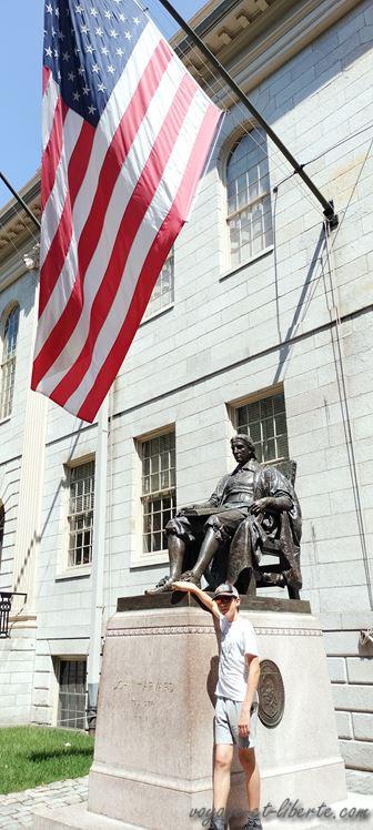 En attendant, en cette chaude et ensoleillée journée, nous décidons de commencer nos visites par la célèbre Université de Harvard (dans la ville de Cambridge), fondée en 1636. C’est le plus ancien établissement d’enseignement supérieur des US. Miracle, nous trouvons un stationnement juste devant !