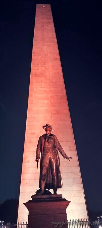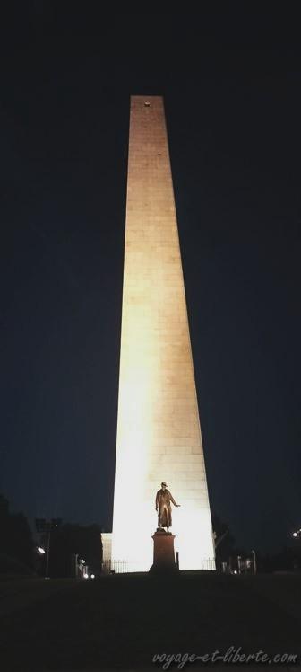 Bien que morts de fatigue, nous optons pour un petit « Boston by night » pour aller voir le Bunker Hill qui n’est pas très loin. Il s’agit d’un obélisque de 67 mètres de haut qui commémore la bataille la plus sanglante de la guerre d’indépendance des Etats-Unis en 1775.