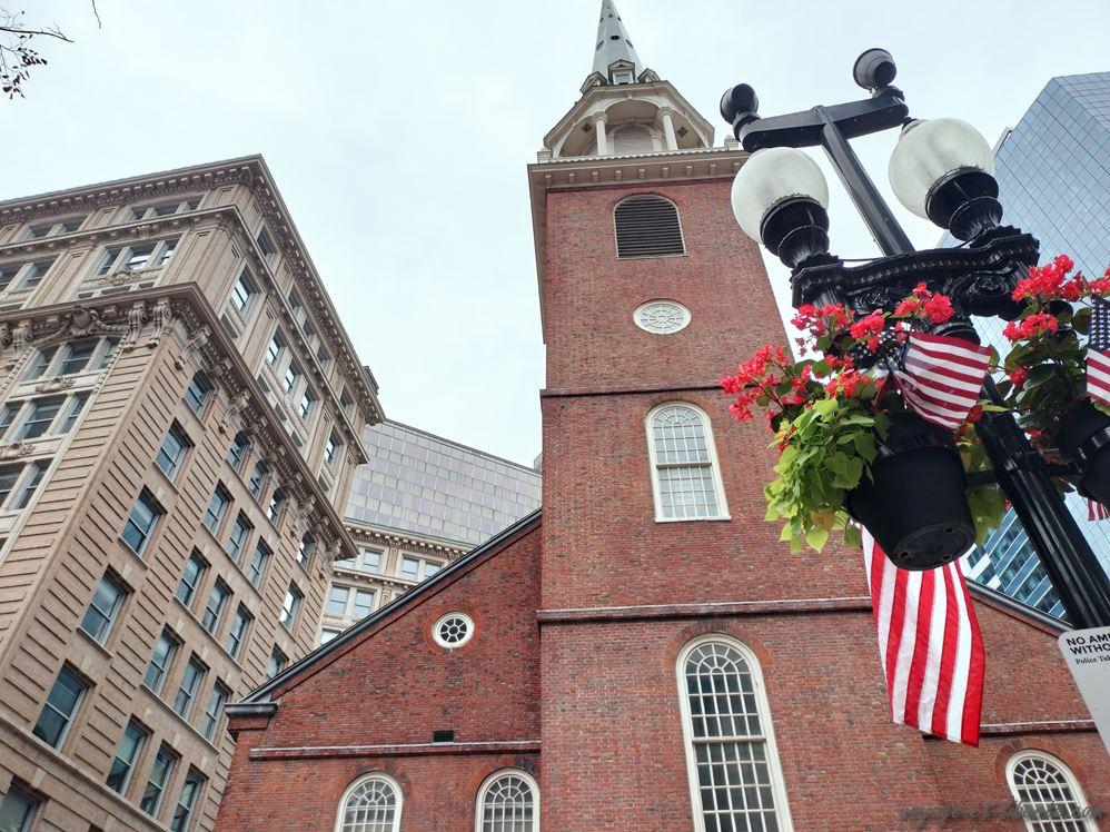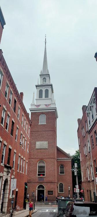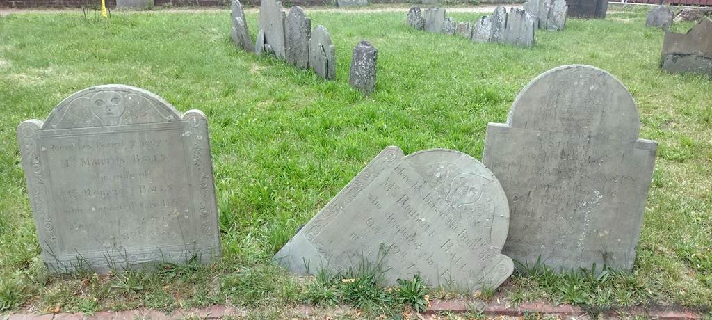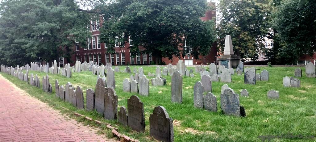 Nous arrivons à Old North Church, une église construite en 1723, à proximité du cimetière de Copp’s Hill lui-même fondé en 1660. Plusieurs hommes ayant pris part à l’événement historique du Tea-Party (pour faire court, une importante révolte politique contre le Parlement anglais en 1773, précédant la guerre d’indépendance américaine) y sont enterrés.