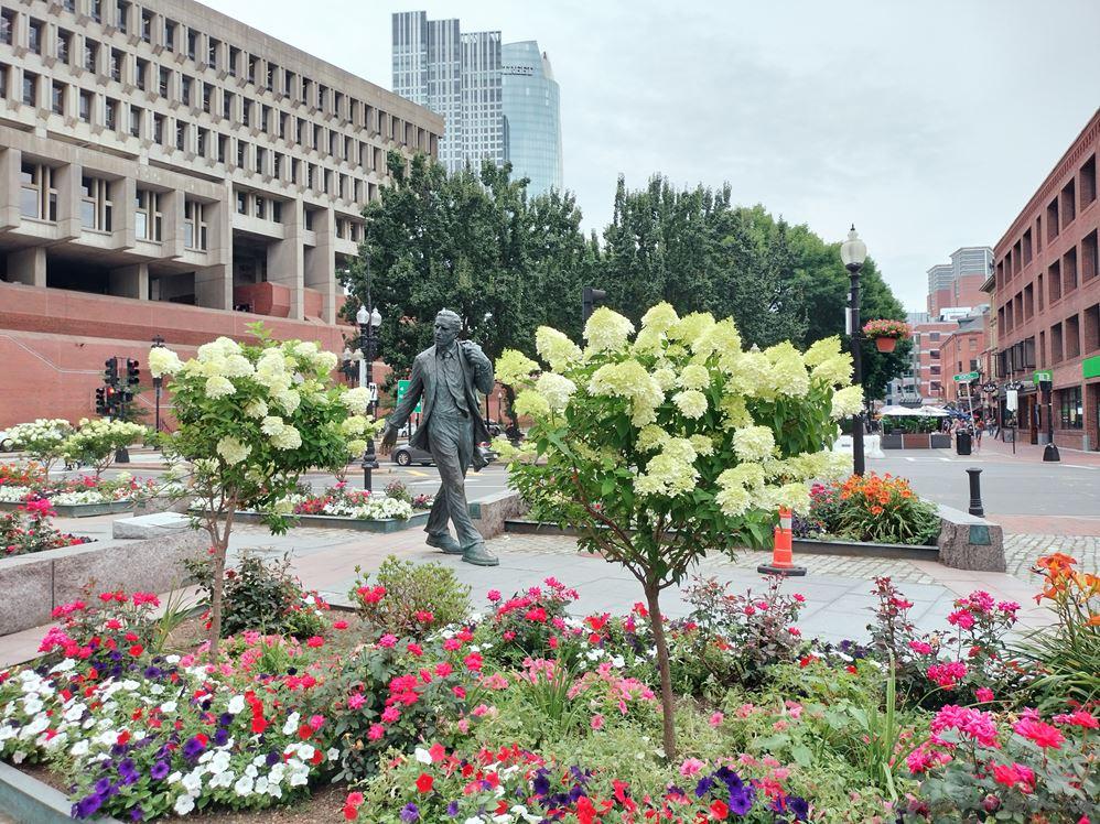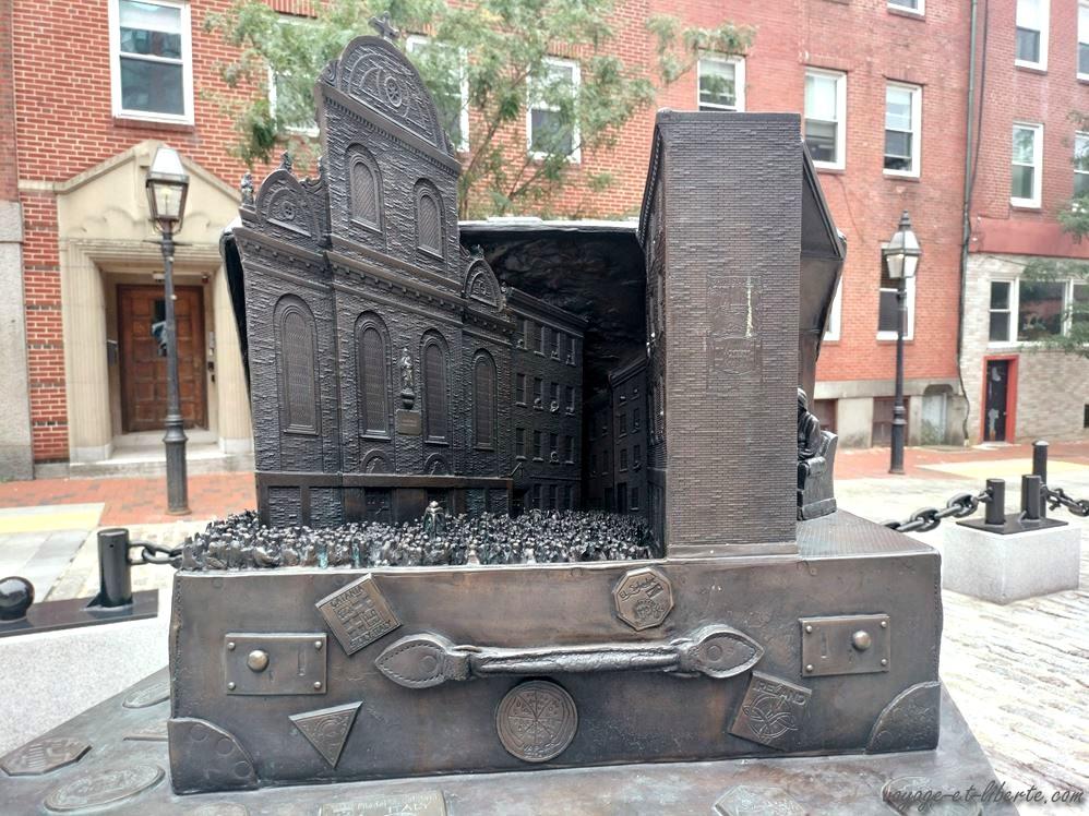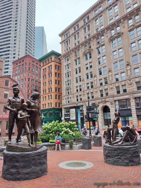 Juste derrière se trouve le mémorial de la famine des irlandais. Bien qu’il ne s’agisse que de statues, j’ai trouvé l’endroit émouvant car Boston n’est pas seulement une terre de révolution, mais aussi d’asile. Elle a ainsi accueilli beaucoup d’Irlandais suite à la grande famine de 1845 qui décima un grand nombre d’entre eux dans leur propre pays et obligea beaucoup d’autres à s’exiler aux Etats-Unis pour survivre.