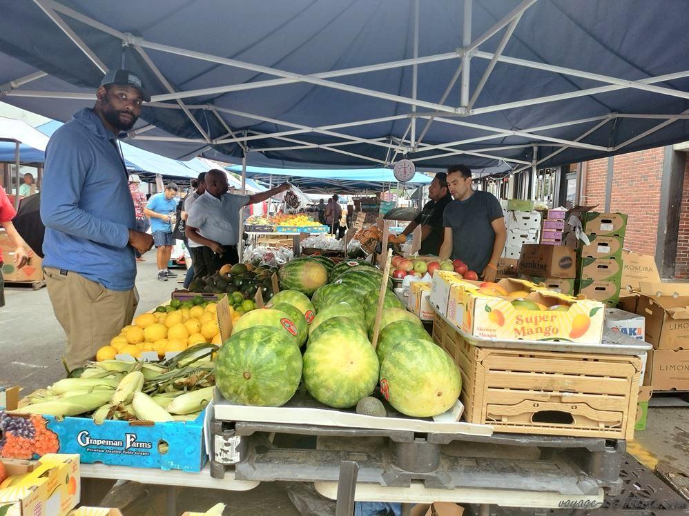 Nous prenons ensuite le chemin du Downtown, passant au passage devant la plus vieille taverne de la ville et un marché de fruits et légumes : ça fait tellement longtemps que nous n’en avons pas vu que nous lâchons la visite touristique pour nous recueillir sur les fraises, les myrtilles et les mangues qui sont sous nos yeux hihi.
