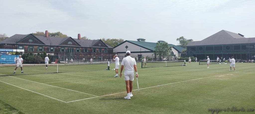 Les joueurs jouant en blanc, l’ambiance est particulièrement chic, voire surannée : il ne manque plus que la famille royale dans les gradins…