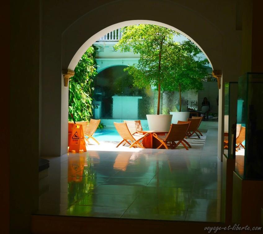 Après avoir traversé la zone marécageuse et très pauvre qui sépare Santa Marta de l’immense ville de Barranquilla, puis celle tout aussi ingrate qui relie Barranquilla à Carthagène, nous avons posé nos valises à l’hôtel Ibis, en face de l’océan ! Le contraste entre la richesse de la ville moderne et de ses banlieues est impressionnant et assez triste.