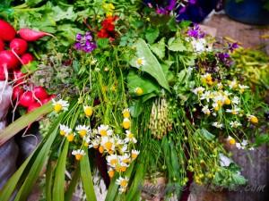 Au détour d’un étal, Carlito qui n’a en rien perdu de son amour des fleurs et des plantes, tombe en pamoison devant d’énormes bouquets de fleurs aromatiques, me suppliant de lui en offrir un. Il a une idée en tête : faire des huiles « essentielles » avec. Je me laisse fléchir. Dans le fond, je me dis que ça l’occupera.