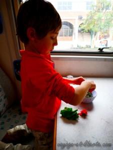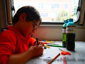 Bien joué ! Plusieurs heures plus tard de tranquillité parentale, le petit bonhomme a coupé finement ses fleurs et ses feuilles, les a lavés, mis dans des bouteilles, arrosés d’huile. Le temps de décorer les flacons et hop ! Dans quelques jours ou semaines de macération nous aurons nos huiles de massage !