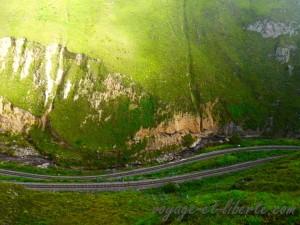 Puis les zigzags se resserrent, ne permettant plus au train de négocier la moindre courbe. A plusieurs reprises, il doit faire marche arrière pour négocier un zigzag particulièrement radical et, par là même occasion changer de voie. Un peu comme s’il descendait un escalier !