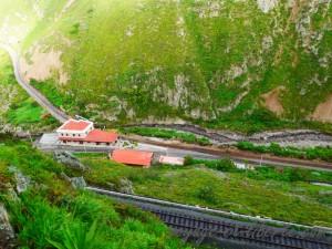 Juste avant l’arrêt en gare, le train nous laisse descendre un moment pour admirer « le nez du Diable », la montagne que nous venons de descendre en train. On l’appelle ainsi en raison des nombreux travailleurs qui ont payé de leur vie la construction de cette portion de voie au 19ème siècle.