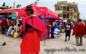 Le temps de remonter à Alausi et le village s’est couvert d’un joli marché ! Les indigènes arborent leurs habits du dimanche, dans de nouvelles tonalités par rapport aux villages déjà traversés.