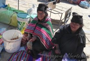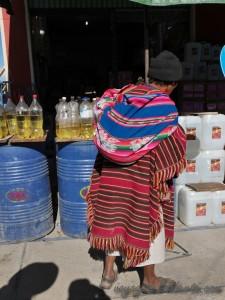 En Bolivie, les gens sont assez différents de nous. Ce sont très souvent des descendants des indigènes qui vivaient là avant la conquête espagnole au 16ème siècle. Ils portent encore des habits traditionnels boliviens. Les bébés sont portés dans le dos par leurs mamans qui ont souvent beaucoup d’enfants (8, 10, 12 …). C’est superbe à voir !