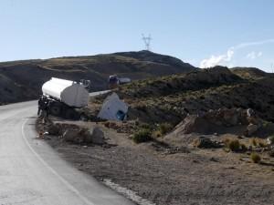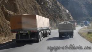 Pour se déplacer il faut emprunter des routes et des pistes souvent très dangereuses. Ce sont des routes de montagne très sinueuses ou des pistes en très mauvais état. On a vu beaucoup d’accidents ! Notre fourgon s’est même enlisé sur un piste. On a dû demander à une voiture de nous sortir des « sables mouvants ».