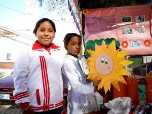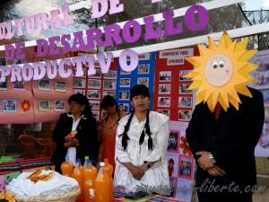 Le lendemain, dans la rue, nous assistons à la présentation d’un projet scolaire. La Constitution bolivienne de 2009 oblige la prise en compte des diversités communautaires (l’exact opposé de la Constitution française) et chaque région doit veiller au respect des cultures autochtones (ici ce sont des quechuas) et tout faire pour les valoriser. Un peu comme dans la pédagogie Montessori, les enfants sont totalement acteurs dans le processus éducatif. Nous sommes bluffés !