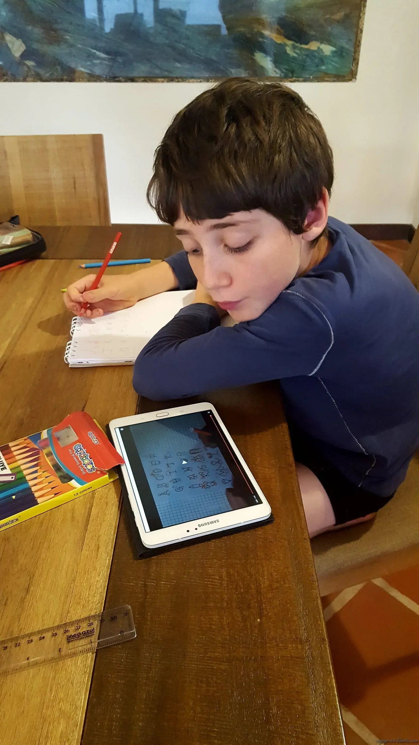 Je précise que notre emploi du temps a toujours été le même en primaire ou au collège : 3 heures d’enseignement le matin (c’est suffisant en volume horaire quand on enseigne à un seul enfant à la fois et non à une classe entière), après-midis libres. Depuis le confinement de presque 6 mois en Colombie, nous avons dû céder quant aux écrans et Carlito s’en sert beaucoup pour jouer à des jeux de business ou pour regarder des vidéos en lien (ou pas, soyons lucide) avec ses sujets préférés : l’aviation et la géopolitique du monde aux 19è, 20è et 21ème siècles. Par ailleurs, nous avons toujours insisté sur le sport et, quand on ne voyage pas, il en fait au minimum une dizaine d’heures par semaine (BMX et danse en Colombie, VTT au Mexique, tennis au Maroc). Enfin, il lit, joue (plus petit il jouait beaucoup tout seul à ses jeux de société) et … s’occupe de tâches ménagères prédéfinies.