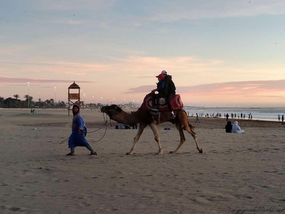 Nous sommes début janvier et, un peu avant le coucher du soleil, il fait encore 25 degrés. Tous les touristes présents profitent de la douceur. Certains s’offrent un tour de dromadaire …