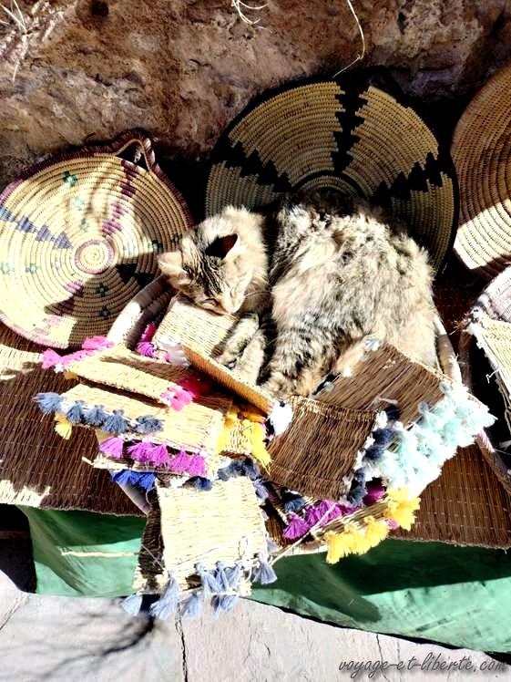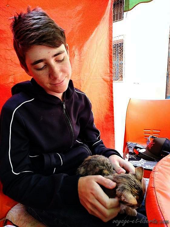Nous finissons par lui fausser brusquement compagnie après l’avoir gratifié d’un pourboire très correct. Evidemment, et selon la tradition, il se fâche un peu car la somme n’est, selon lui, pas à la hauteur de ses services (non demandés). Nous n’en tenons pas compte, sachant que quoi que tu donnes, ton « guide » en voudra le double ou le triple, te faisant passer du statut de cher-ami-bienfaiteur à celui de charogne-radin-voleur en une fraction de seconde. Ces techniques commerciales marocaines sont décidément très au point hihi …