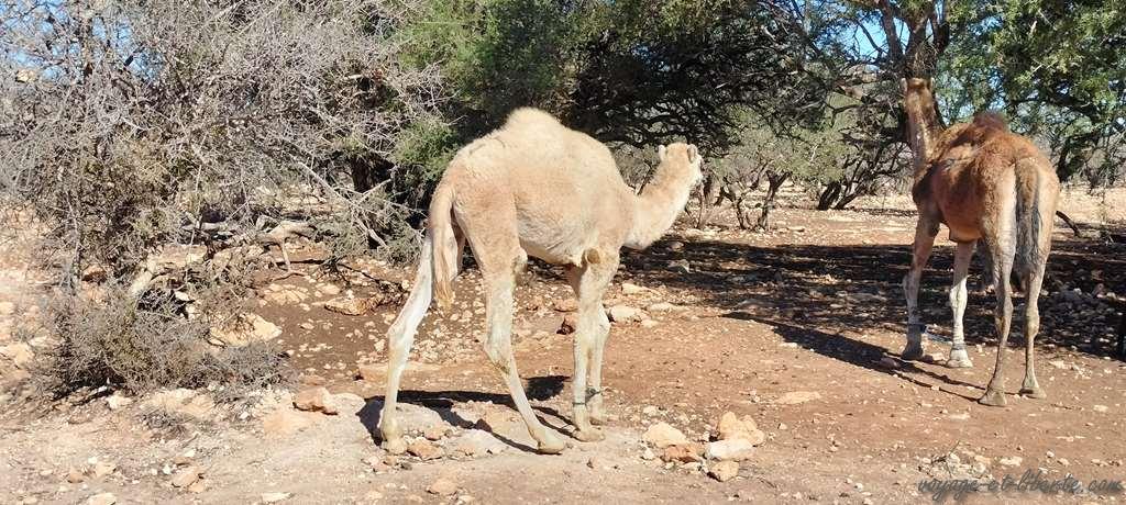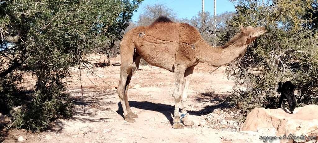 En sortant d’Essaouira le paysage change imperceptiblement, les plantations d’arganiers faisant place à des champs de cailloux.