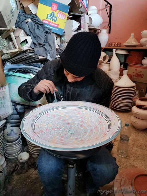 Le poulpe avalé, j’apprécierais de me promener tranquilou dans la médina, mais monsieur Scotch veut nous montrer « sa » coopérative de poteries.