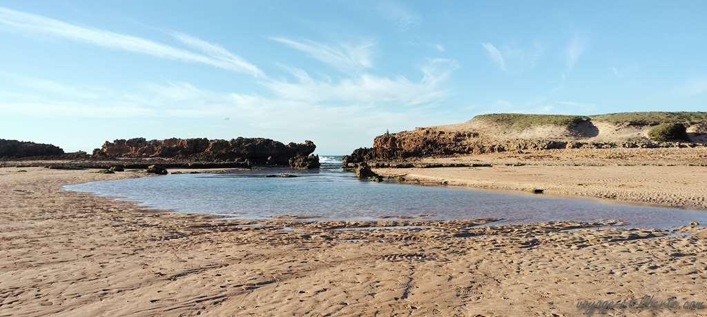 Pour nous, Oualidia est avant tout l’endroit où nous avons décidé de passer la nuit en remontant de Safi vers El Jadida. Ce que nous découvrons, c’est que la bourgade n’est pas uniquement intéressante pour l’aire de camping-car qu’elle offre, mais pour sa lagune protégée par des récifs et communiquant avec l’Atlantique.