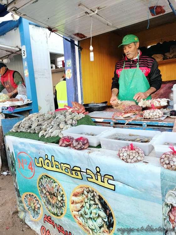 La spécialité de Oualidia, ce sont les huitres vendues partout, ainsi que les fruits de mer.