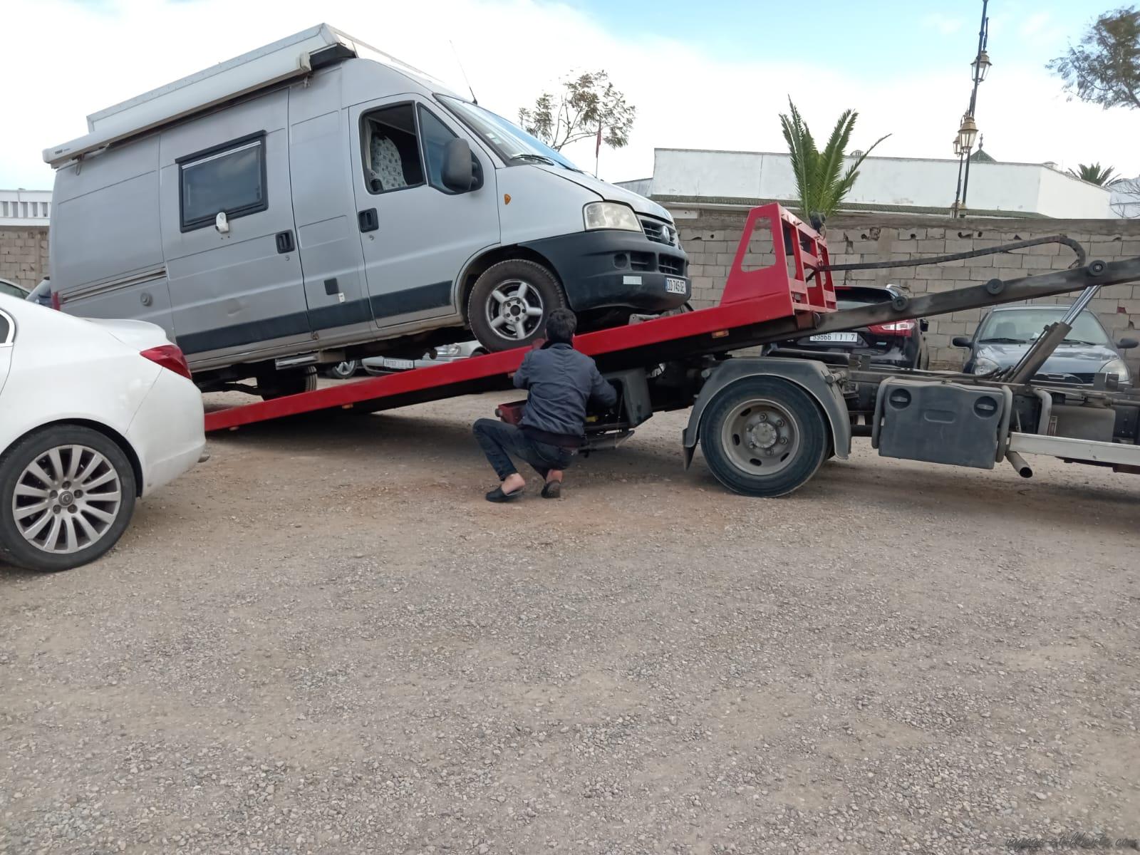 Nous arrivons à Kenitra en fin de journée, passons la nuit au camping, bien décidés à franchir la frontière le lendemain. Toutefois, au réveil, nous nous rendons compte que la technologie FIAT en a décidé autrement…