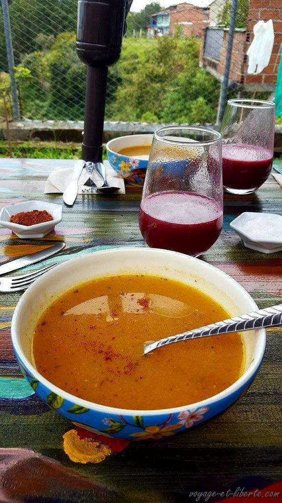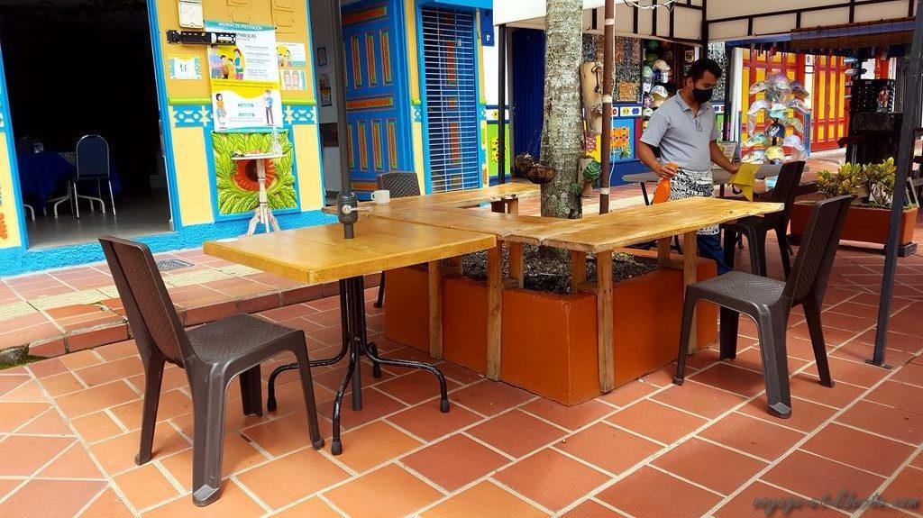 Dimanche 28 juin : il existe désormais 4 types de restos à Guatapé : ceux qui ont mis la clef sous la porte, ceux autorisés à livrer à domicile, ceux plus originaux pouvant accueillir un tout petit peu de public car satisfaisant aux protocoles de biosécurité et les restos clandestins. Entre les 3 derniers mon coeur balance ! Ai-je la flemme de me déplacer ? Je fais livrer. Ai-je envie de cauchemarder ? Je file chez un « biosécurisé. Enfin, façon de parler car, pour ceux-ci, il faut réserver. Puis, à l’entrée on te désinfecte des pieds à la tête, on prend ta température, on relève tes coordonnées, avant d’installer les convives (fussent-ils d’une même famille vivant au quotidien ensemble) à 2 mètres les uns des autres . Tout juste si on ne te propose pas un toucher rectal et le menu de l’hosto à déguster ! Définitivement rédhibitoire ! Et puis, il reste les restos clandestins des potes qui n’ont pas obtenu les autorisations administratives. Dans les arrières cours des maisons toute une cuisine s’organise pour les initiés. Tu peux (dois ?) venir sans masque, mais seulement si on te connaît. Une porte anonyme s’ouvre, tu t’engouffres le plus discrètement possible, retrouves éventuellement des amis que tu serres dans tes bras parce que c’est humain, déguste ton plat et repars heureux. Et tu le fais d’autant plus volontiers que Guatapé est encore à cette date « libre de covid » depuis plusieurs mois. Alors, pourquoi se priver des étreintes ???