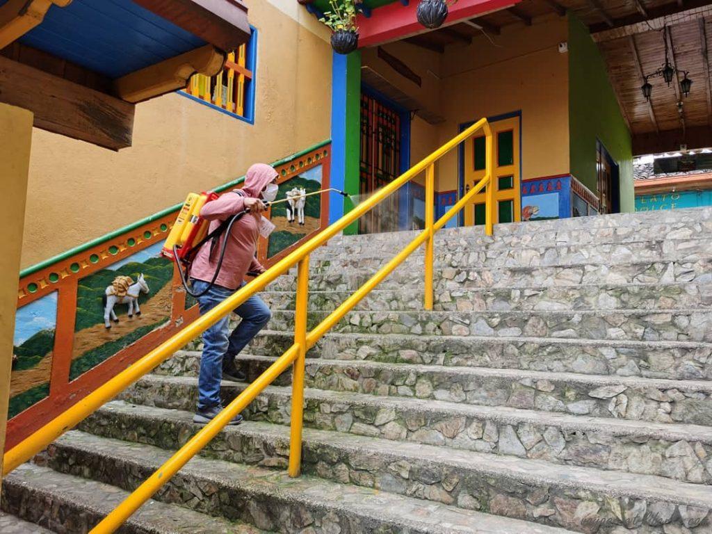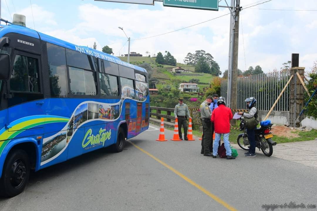 Le même jour, le maire ferme les frontières du pueblo (toujours pas réouvertes 1 mois plus tard) : un bus est installé sur chacun des ponts permettant l’accès au pueblo. La police et l’armée sont mobilisées. On annonce un premier cas de coronavirus à Guatapé. Gracias a Dios ce n’est pas un touriste étranger qui l’a ramené jusque-là.