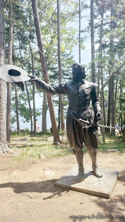 Premier arrêt, le site historique de l’île de Sainte Croix. C’est à cet endroit que la première tentative française de coloniser de façon permanente le territoire nord-américain eut lieu. L’île de Sainte-Croix fût concrètement l’un des premiers établissements européens en Amérique du Nord (1604) et permit ensuite la colonisation du vaste territoire connu sous le nom d’Acadie. Quand les français y débarquent, la région est alors peuplée de peuples premiers avec qui les européens ont déjà commercé. L’expédition est tout autant motivée par la volonté de s’approprier un territoire que par celle de faire fortune en important en France les fourrures de castors que vendent les autochtones (ou échangent contre des produits européens appréciés).