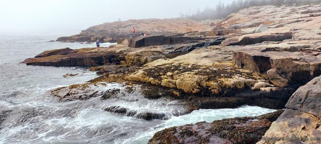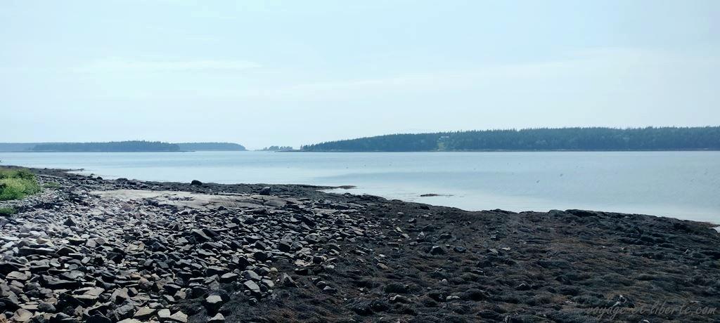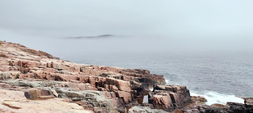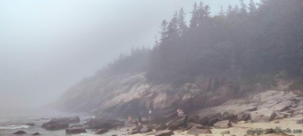 C’est joli, mais on a vu mieux ailleurs. Chouinou, qui ne lâche rien ce jour-là, nous le fait remarquer âprement. Il veut rentrer. De fait, il n’a pas tout à fait tort. On pourrait encore faire une rando dans les bois, mais comme le Maine est le haut lieu de la maladie de Lyme aux US, nous rentrons au van en milieu d’aprem. Un peu déçus par ce parc qui doit vraiment être splendide avec des couleurs automnales, mais est assez sinistre sous le brouillard.