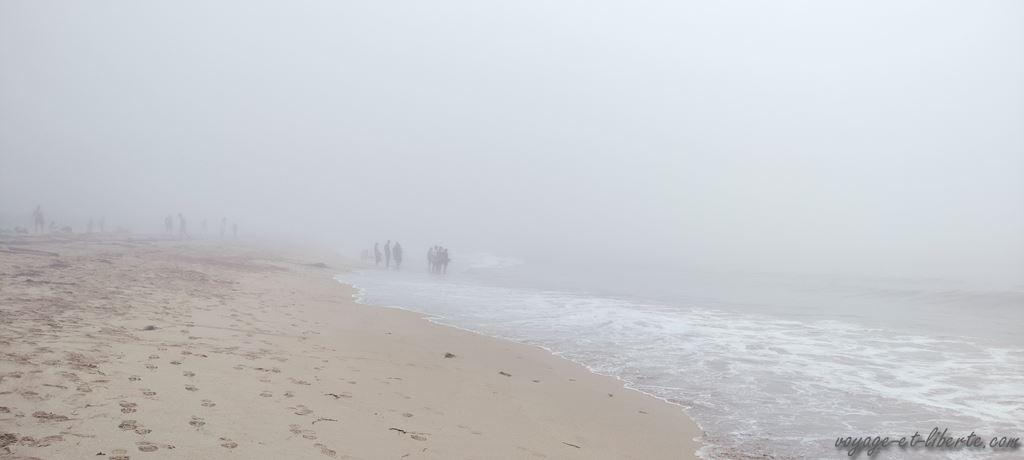 Premier arrêt à la plage. L’avantage du brouillard est que nul ne peut se rendre compte des imperfections de mon body summer hihi. D’ailleurs, un gamin m’appelle maman sans se rendre compte que je ne suis pas sa mère.