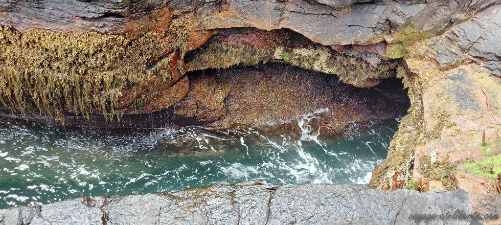 Puis, nous arrivons au Thunder Holl, un trou dans un rocher où la mer s’engouffre avec un bruit fracassant.