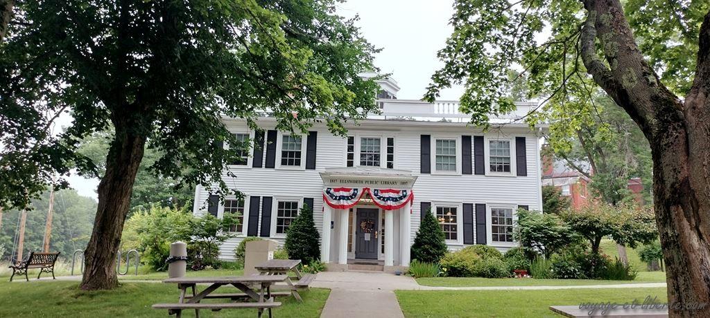 Au matin, nous mettons le cap sur la petite ville de Ellsworth. Ce sera un arrêt bibliothèque, le temps ne permettant pas vraiment d’apprécier le paysage hihi. J’adore car, dans le Maine, ce sont souvent des demeures historiques qui ont été réhabilitées en bibliothèques :