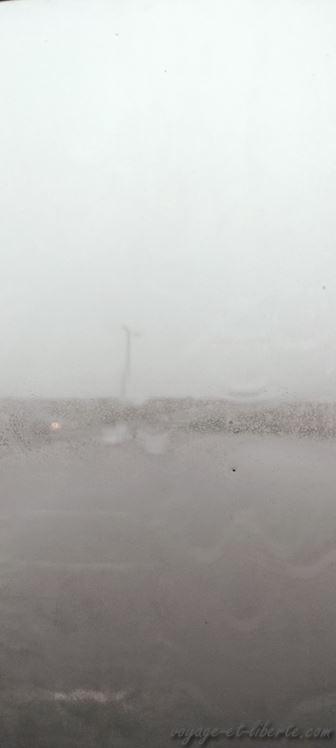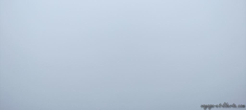 C’est en ressortant du parc que le brouillard s’abat vraiment sur nous ! Pas grave, ça ira mieux demain, pensons-nous !