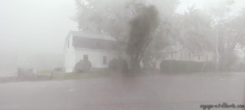 Mais quand nous ouvrons les yeux le lendemain, une jolie surprise nous attend ! Le brouillard a disparu, remplacé par une pluie battante ! Punaise, le gars qui oserait alors me parler de sécheresse et de canicule sur « tous les Etats-Unis », prendrait mon poing dans la figure !