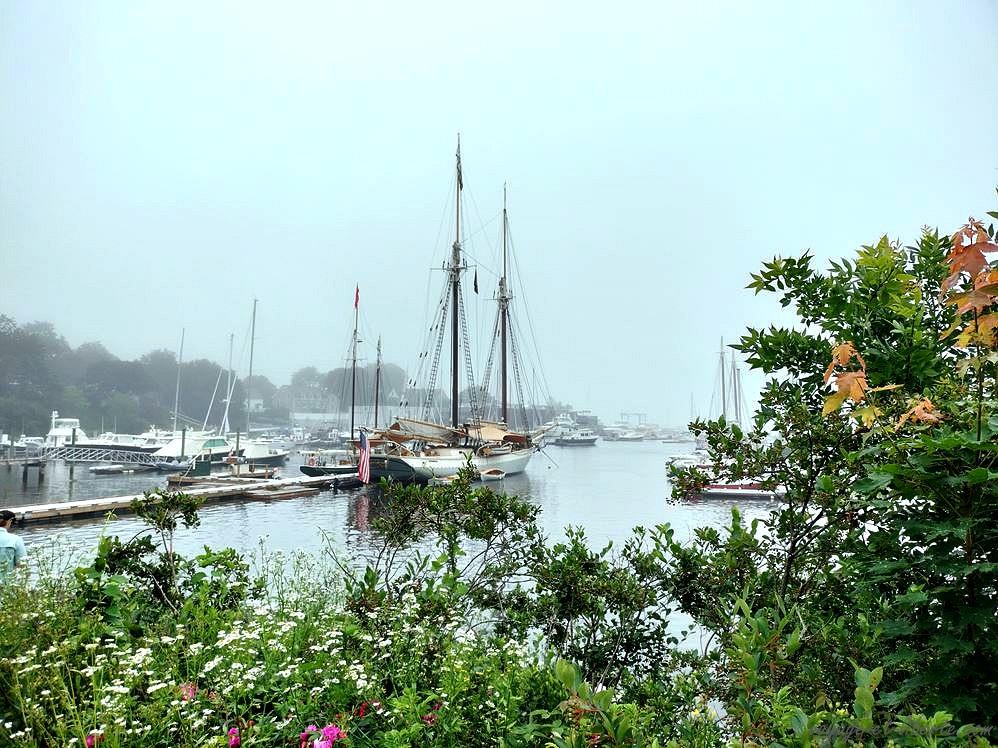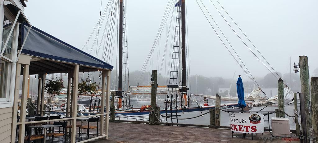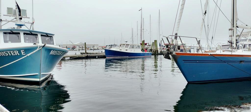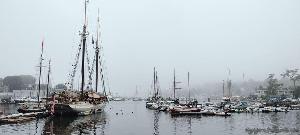 Le lendemain matin, par brouillard, nous visitons le phare de Rockland, plus loin sur la péninsule. Un très joli petit port nous y accueille.