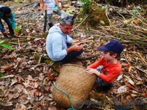 Nous resterons longtemps dans la forêt, à la recherche des « seivos », arbres considérés comme sacrés par la communauté. Immenses, ils possèdent d’énormes et apparentes racines formant comme des murs. Ceux rencontrés auraient quelques 700 ans. Nous sommes fascinés et … trempés car la pluie a fini par nous atteindre !