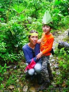 Le lendemain, rebelote. Nous partons en forêt pour rendre visite à deux cascades sacrées. Vêtus de pantalons et tee-shirts manches longues, nous nous engageons derrière notre guide. Les explications des différentes plantes nous intéressent beaucoup, tout comme la dégustation des « fourmis citrons » (elles en ont le goût) ou la fabrication de coiffes en palmiers (on est pas beaux ?!!!).