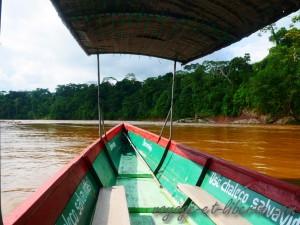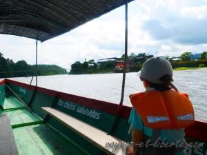 Demeurés de bonne humeur malgré tout, nous offrons à Carlito un petit tour de pirogue à Misahualli, sur le rio Napo, le plus grand fleuve équatorien.