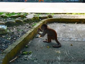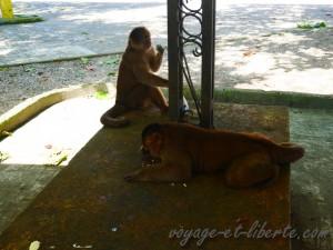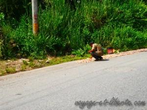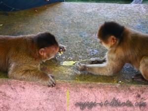 Les singes se bousculent sur la place centrale du village, tandis que les larves de palmiers attendent de se faire cuisiner au barbecue. Pour nous, ce sera « non merci ! » ! OK pour les fourmis, mais nous n’avons pas assez faim pour avaler les petites dodues se tortillant !